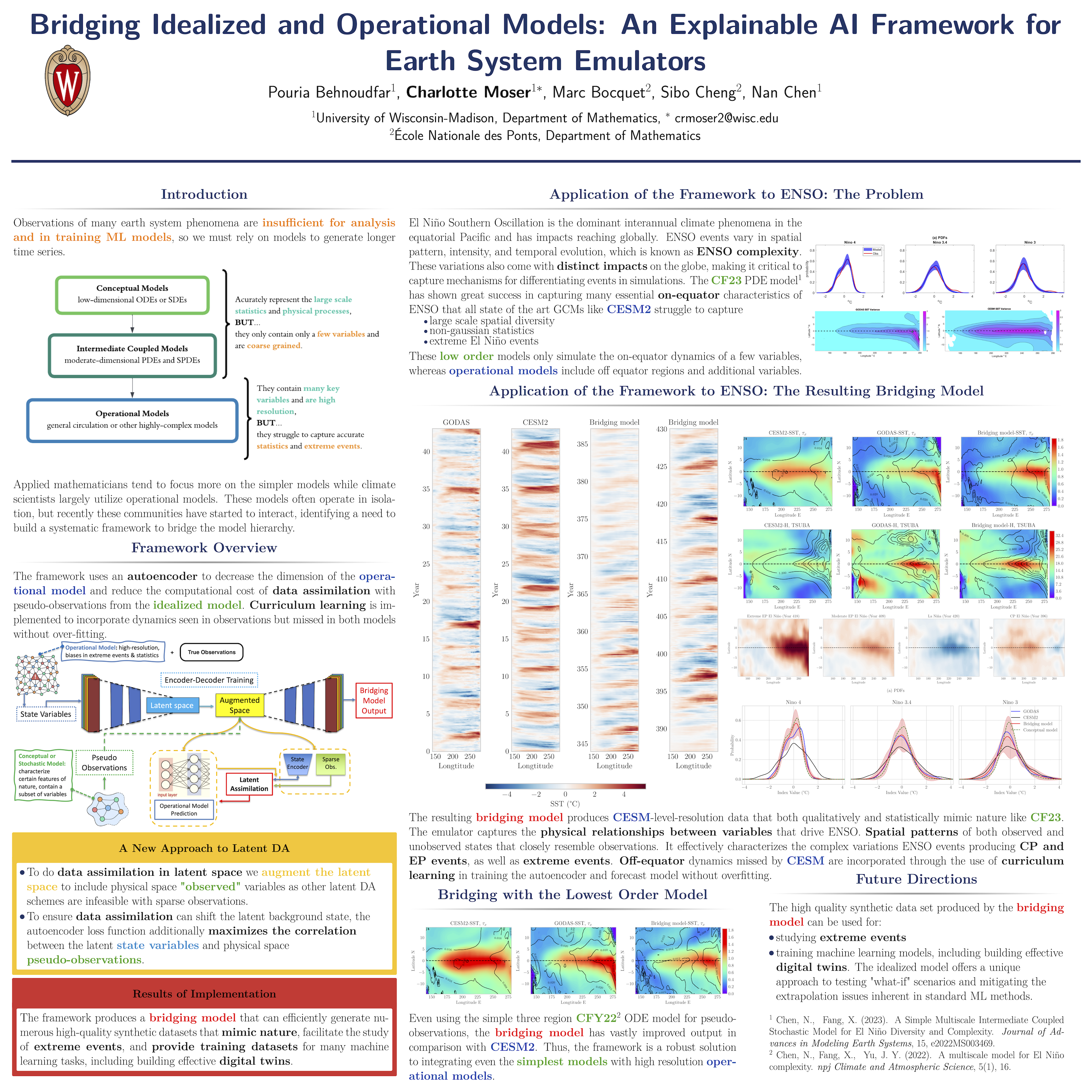 Presenter: Charlotte Rose Moser (University of Wisconsin Madison) Collaborator(s): Pouria Behnoudfar, Marc Bocquet, Sibo Cheng, Nan Chen Title: Bridging Idealized and Operational Models: An Explainable AI Framework for Earth System Emulators