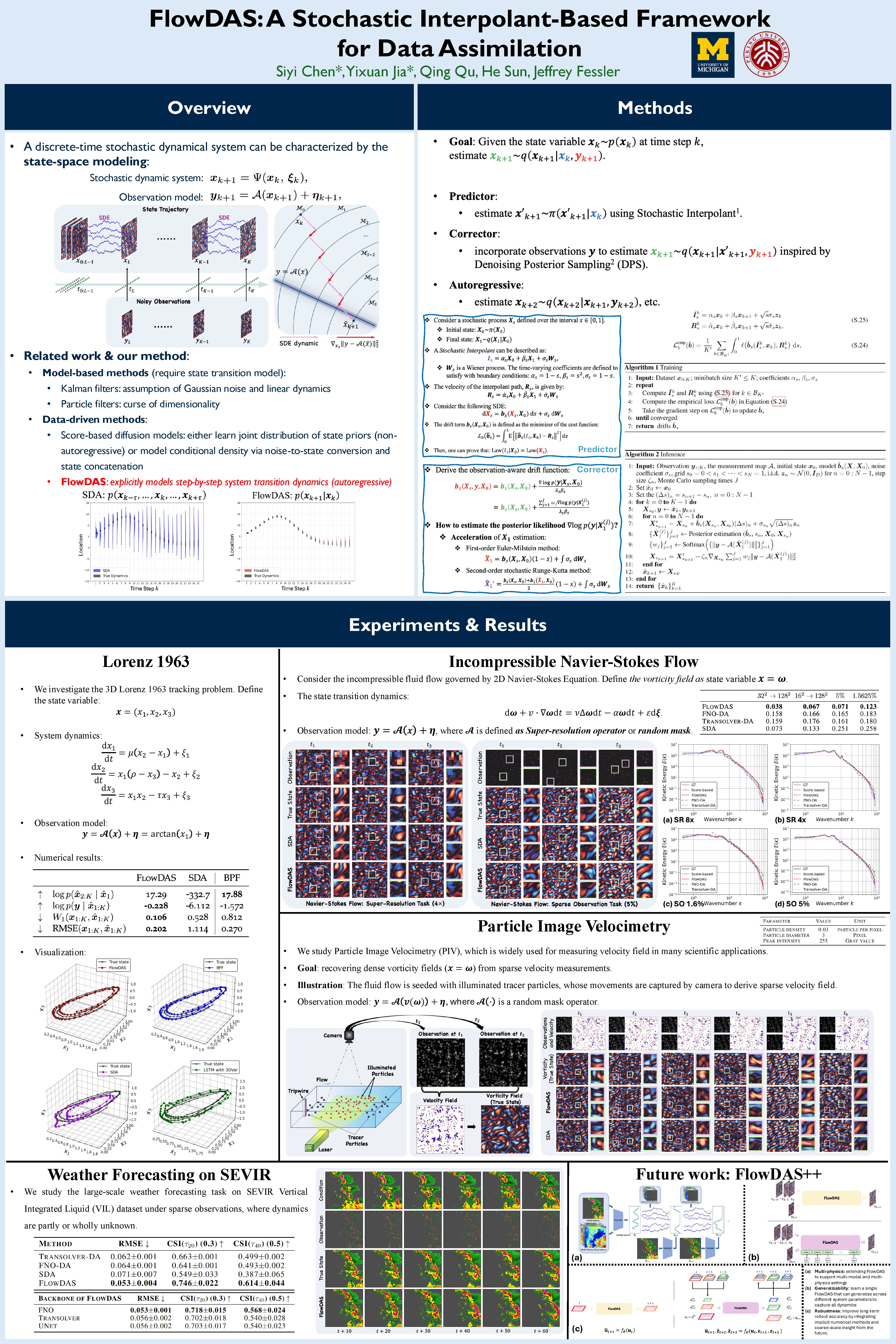Presenter: Yixuan Jia (University of Michigan) Collaborator(s): Siyi Chen*, Yixuan Jia*, Qing Qu, He Sun, Jeffrey Fessler Title: FlowDAS: A Stochastic Interpolants-based Framework for Data Assimilation