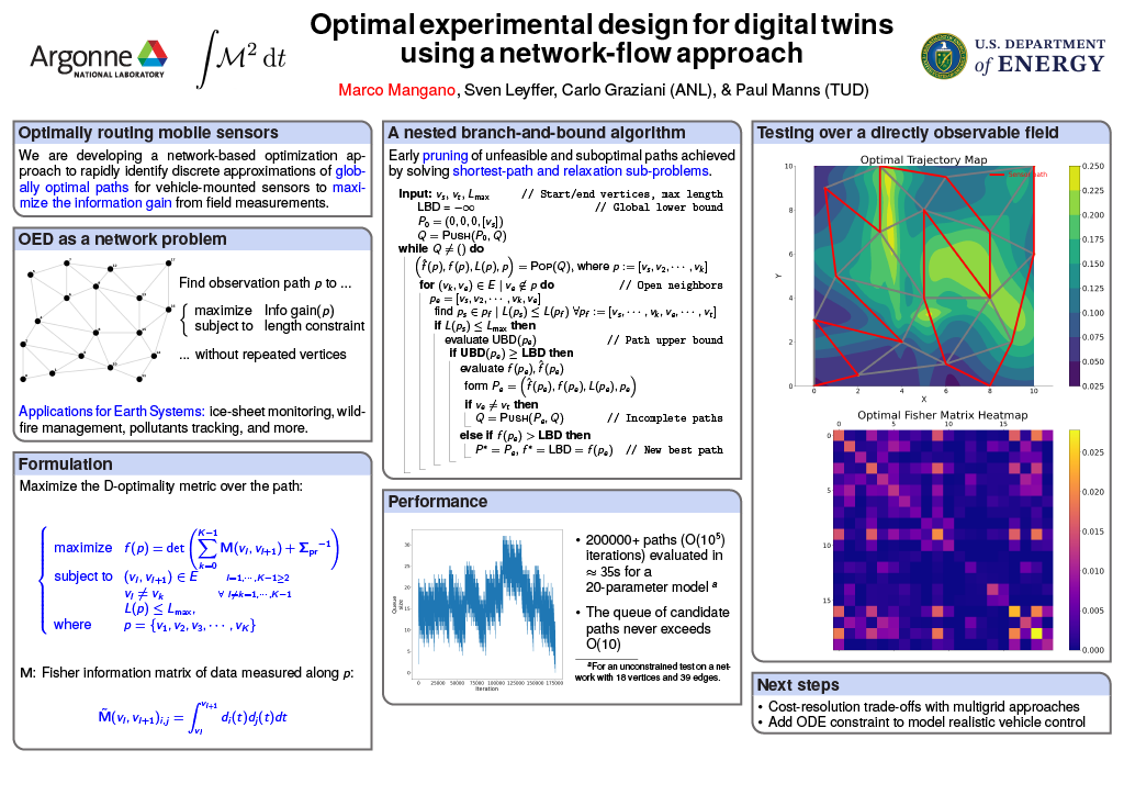 Presenter: Marco Mangano (Argonne National Laboratory) Collaborator(s): Sven Leyffer, Carlo Graziani, Paul Manns Title: Optimal experimental design for digital twins using a network-flow approach