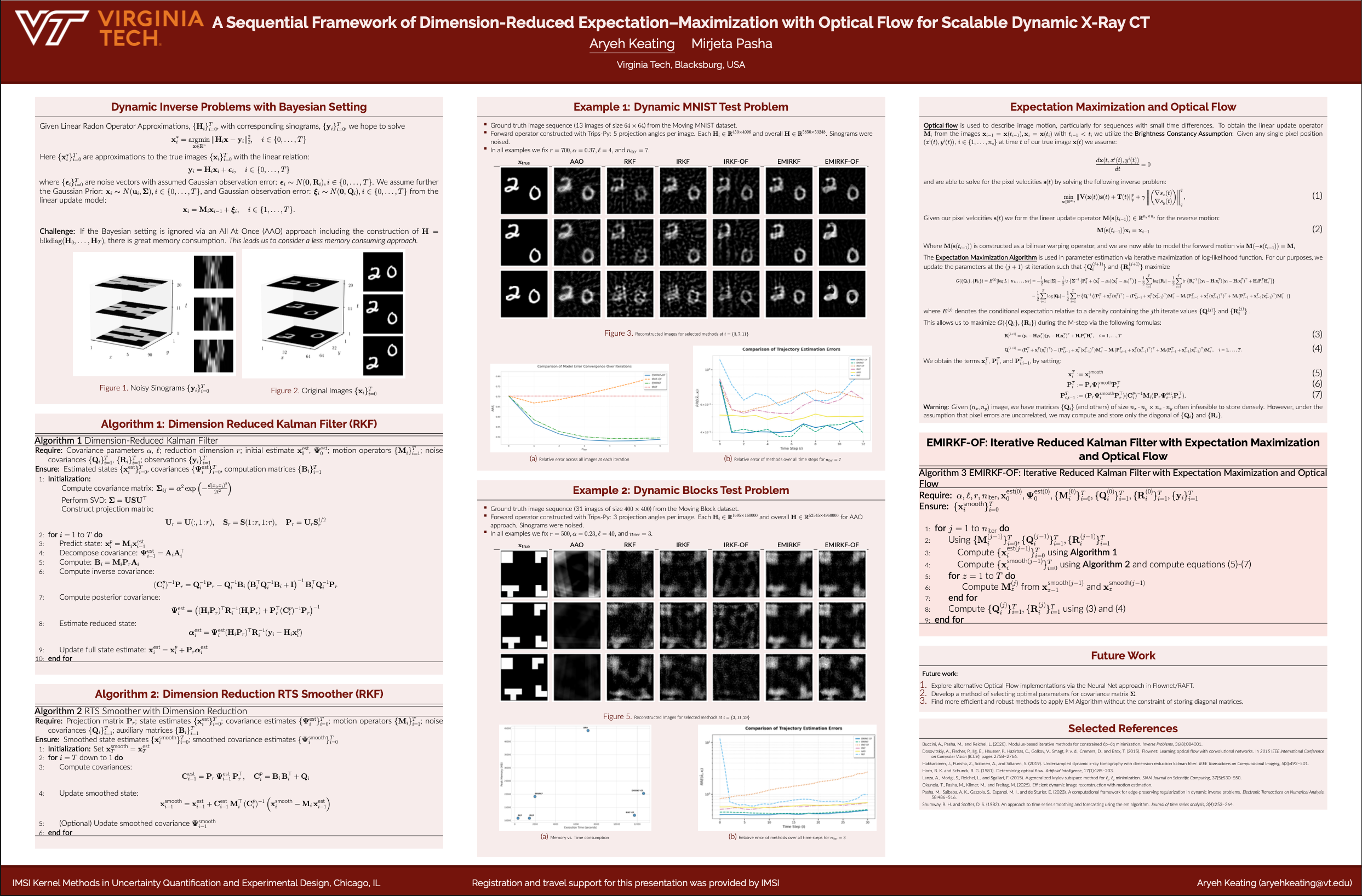Presenter: Aryeh Keating (Virginia Polytechnic Institute & State University (Virginia Tech)) Collaborator(s): Mirjeta Pasha Title: Sequential Dynamic Image Reconstruction Through Kalman Filtering and Smoothing with Optical Flow Motion Estimation
