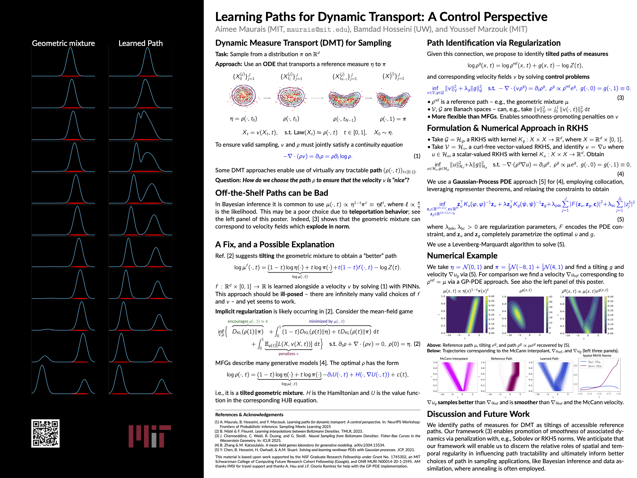 Presenter: Aimee Maurais (Massachusetts Institute of Technology (MIT)) Collaborator(s): Bamdad Hosseini, Youssef Marzouk Title: Learning Paths for Dynamic Transport: A Control Perspective