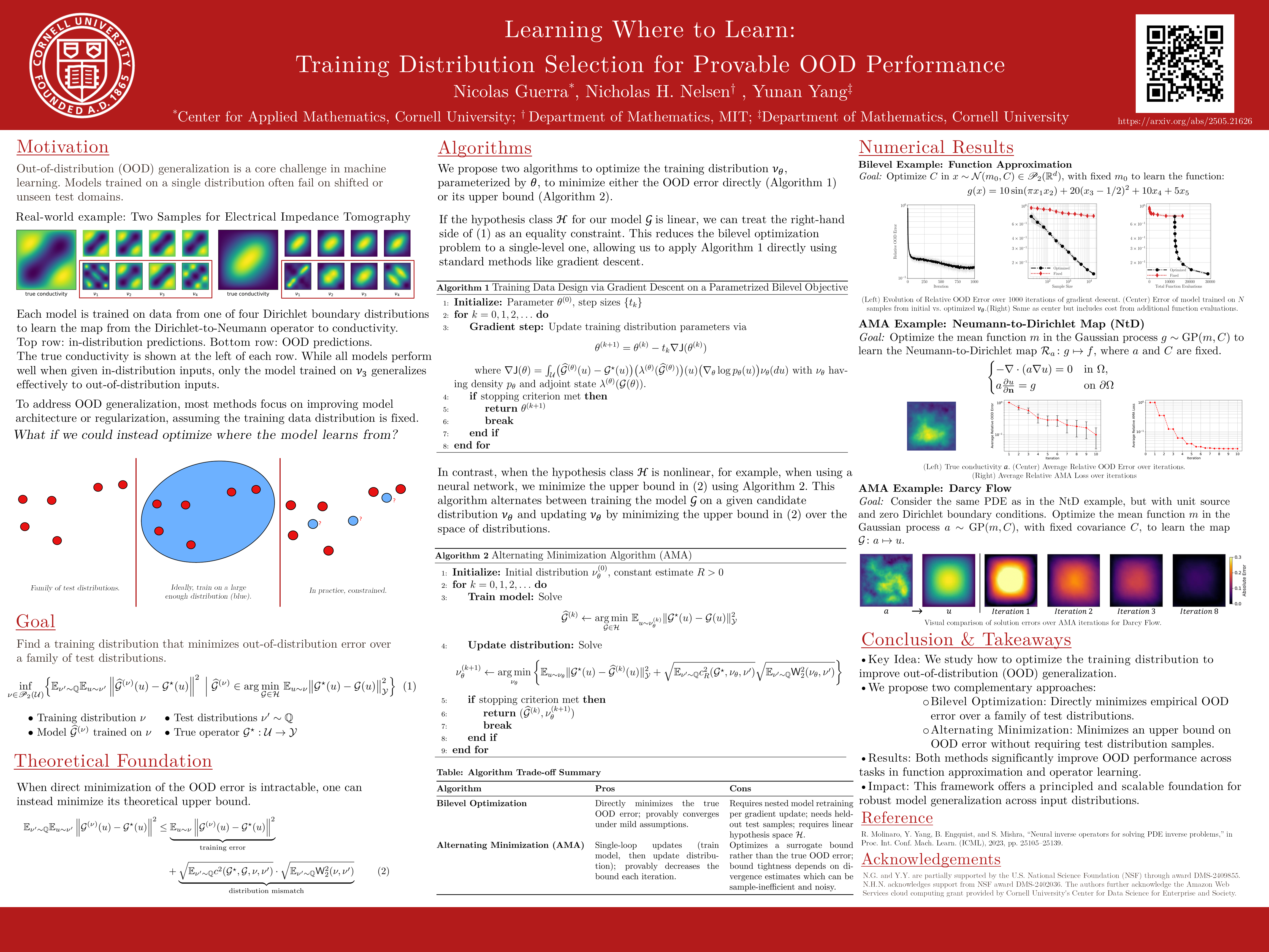 Presenter: Nicolas Martin Guerra (Cornell University) Collaborator(s): Nicholas H. Nelsen, Yunan Yang Title: Learning Where to Learn: Training Distribution Selection for Provable OOD Performance