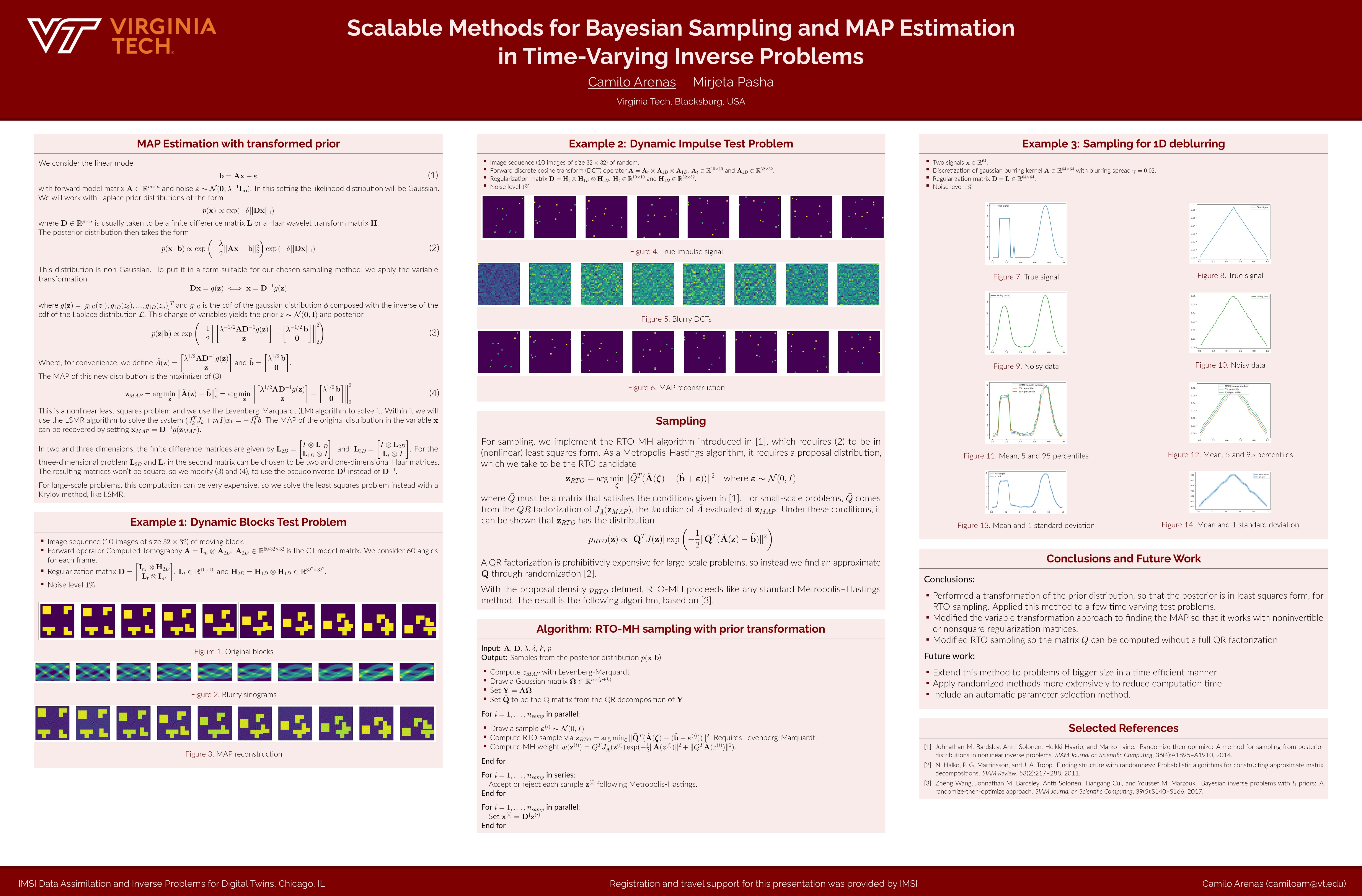 Presenter: Diego Camilo Arenas (Virginia Polytechnic Institute & State University (Virginia Tech)) Collaborator(s): Mirjeta Pasha Title: Scalable Methods for Bayesian Sampling and MAP Estimation in Time-Varying Inverse Problems